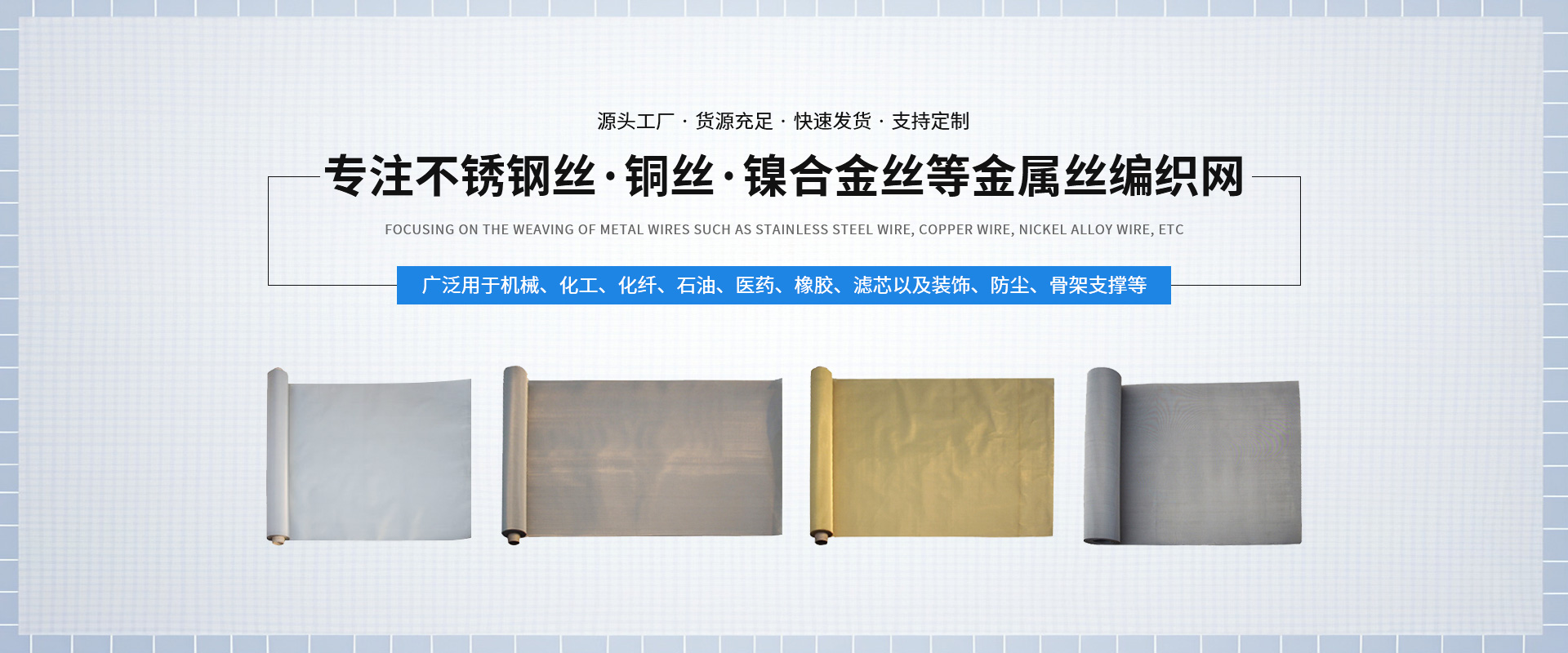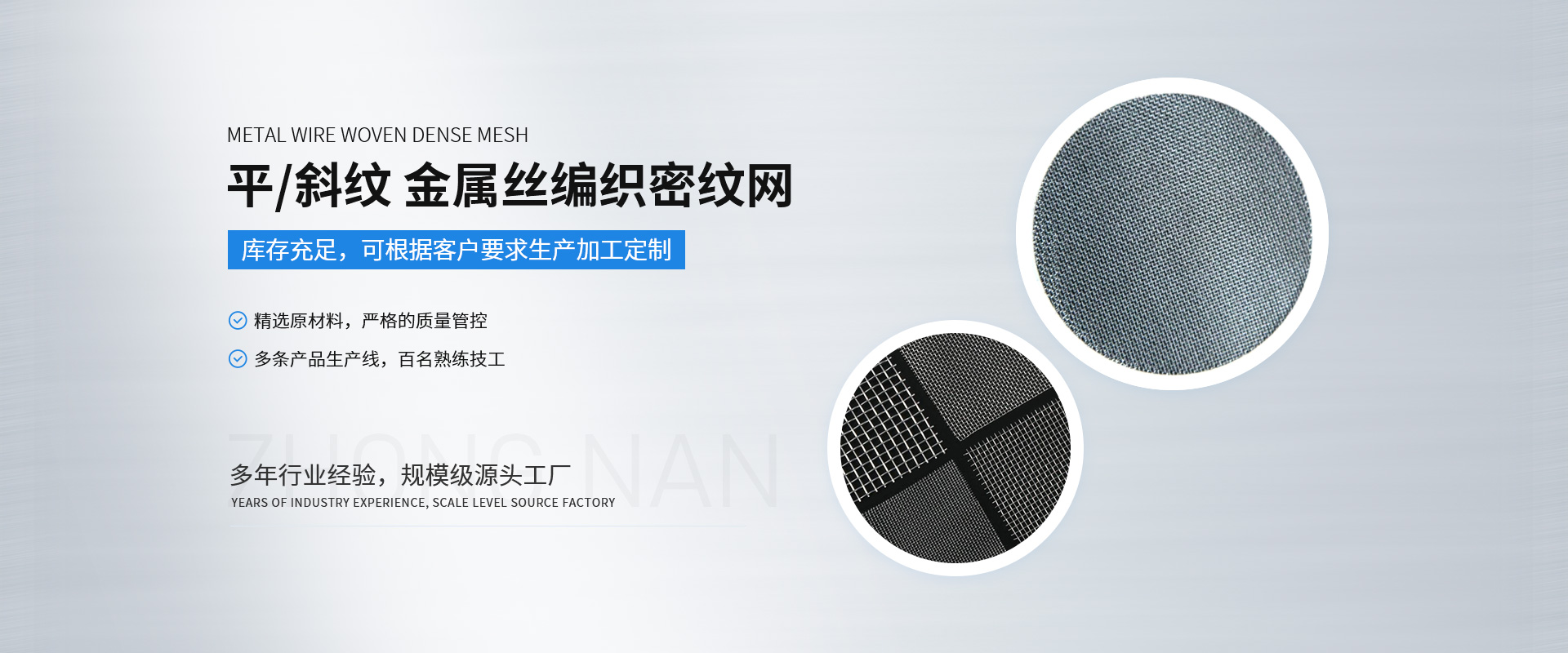 新鄉(xiāng)市中南金屬網有限公司成立于1999 年,公司設在河南省新鄉(xiāng)市。在過去的十幾年來,我們堅持以嚴格的管理措施、雄厚的技術力量、良好的工藝設施,質量上乘、信譽為上為原則,把樹立良好的企業(yè)形象為工作宗旨,歷經市場的嚴峻考驗并贏得廣大用戶的一致好評。金屬絲網編織結構形式有平紋和斜紋兩種方法,嚴格按照航空軍品標準HB1862—93和標準GB/T5330—2003標準,并等效采用國際標準ISO9044—90標準組織生產。 公司擁有生產設備和技術人員,主要生產不銹鋼篩網、磨料網、金屬絲編織方孔網、篩網、濾網 、篩分網 、過濾網、不銹鋼網、絲網、金屬絲網、金屬絲編織密紋網、特種網、不銹鋼密紋網、荷蘭網、席型網。絲網材質選用黃銅、錫青銅、不銹鋼、純鎳等。席型網規(guī)格7/44目—500/3500目,方孔網規(guī)格1/2目—500目,網孔25mm—0.028mm,產品廣泛用于機械、化工、化纖、石油、醫(yī)藥、橡膠、濾芯、固體果粒篩分、流體過濾以及裝飾、防塵、骨架支撐等。 我們以“視質量為生命、以信譽求生存、以科技促發(fā)展、以優(yōu)*產品為客戶服務”的經營理念,真誠的希望與各界人士攜手并進,共創(chuàng)輝煌!